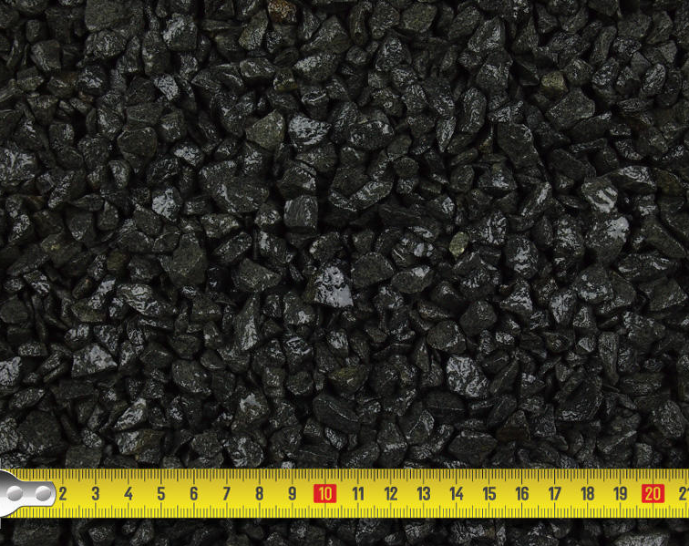 A black/charcoal granite. Very dark and uniform in colour for a striking and bold aesthetic. Used mainly in planting areas to highlight other garden features. Also known as black basalt or black granite. Best to be laid at 3-4cm deep. The actual size ranges between 8-12mm.