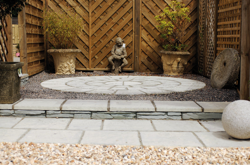 The Cathedral Circle Patio Pac is available in three sizes, 1.8m, 2.56m and 3.48m and contains all the stones you need to create a full circle design.