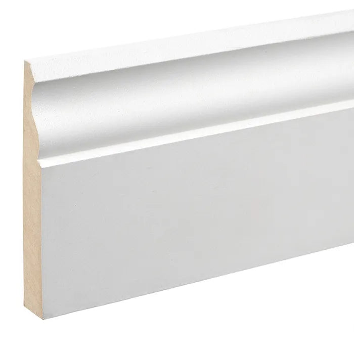 Our MDF ogee Skirting Board is supplied pre-primed white & ready to be installed. MDF skirting board is resistant to twisting, warping and splitting and is free of natural defects. Skirting Board hides un-tidy surfaces between walls and floors, at the same time protecting the wall from any direct knocks.