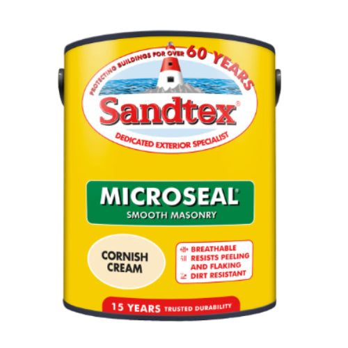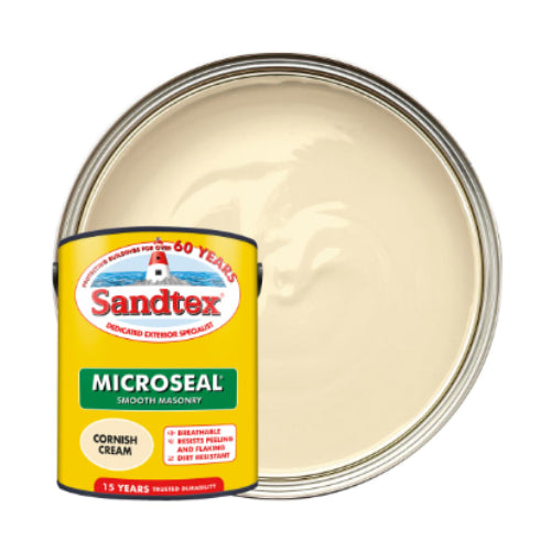 The Sandtex Microseal Ultra Smooth Weatherproof Masonry 15 Year Exterior Wall Paint is a durable and breathable exterior masonry paint that offers up to 15 years of weatherproof protection. Available in Cornish Cream, this unique shade of light cream masonry paint provides excellent versatility and complete coverage, making it the ideal exterior paint for the outside of your house.