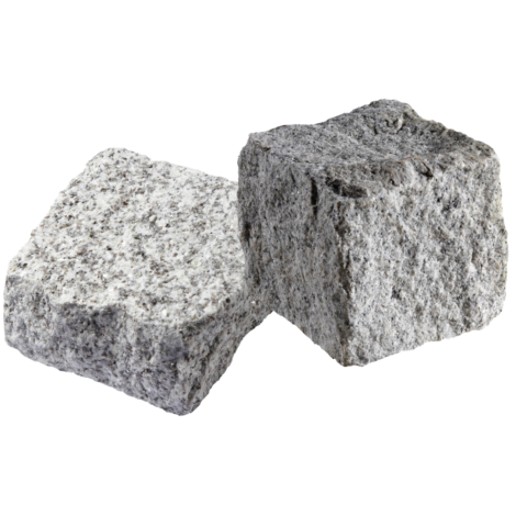 Silver Granite Setts (100mm x 100mm x 40-50 mm thickness) are natural stone block paving that are very hard-wearing and durable. These granite setts have a silver light grey and pewter hue, with undertones of blue and flickers of reflective white from the Mica in the crystalline structure. Granite is a very hard and durable natural stone, making these setts (cobblestones) ideal for driveway paving. These paving blocks have a riven surface and hand-cut edges, and each sett is approximately 100 x 100 mm with a 40 - 50 mm depth.